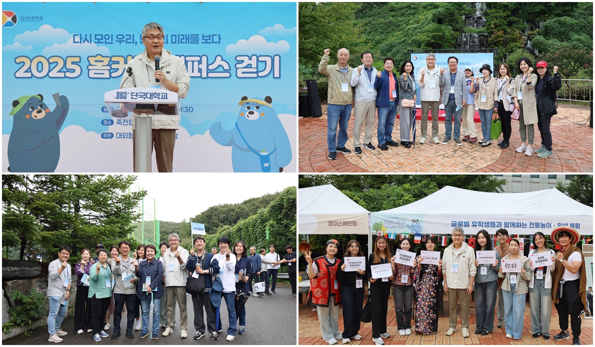 9월 20일, 죽전캠퍼스에서 개최된 '2025 홈커밍 캠퍼스 걷기' 행사에 참석하였다. 죽전캠퍼스 이전 18년 만에 열린 첫 캠퍼스 초청 행사로, 학과·동아리 동문회 등 40개 단체, 1천여 명의 동문과 단국 가족이 참가해 의미 있는 시간을 가졌다. 폭포공원에서 국악과 재학생들의 사물놀이로 힘차게 시작한 개막식에 이어 캠퍼스 걷기, 명소 방문, 체험 부스, 공연, 경품 추첨 등 다채로운 행사가 이어졌고, 안순철 총장은 환영사를 통해 "18년 전 서울캠퍼스에서 옮겨온 나무가 깊게 뿌리를 내리듯 우리 대학도 죽전캠퍼스에 다시 뿌리를 내리고 바닥을 다지며 빠르게 도약하고 있다."며 참석하신 분들께 모교를 위해 열심히 응원해 주시기를 바란다고 당부하였다. 우리 대학은 내년 5월 천안캠퍼스에서도 홈커밍 캠퍼스 걷기 행사를 개최할 예정이다.